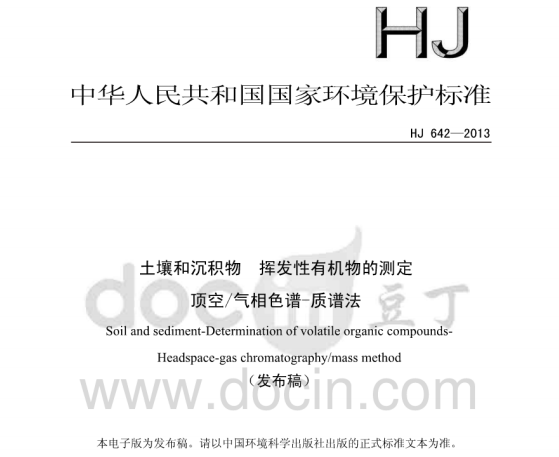 HJ642-2013土壤和沉積物揮發(fā)性有機物的測定頂空氣相色譜—質譜法 揮發(fā)性有機物(VOCs)是指沸點在50-250 C 范圍內的一系列化合物,因其廣泛應用于化工原料和有... 更新日期:2020-05-29 下載包(1)