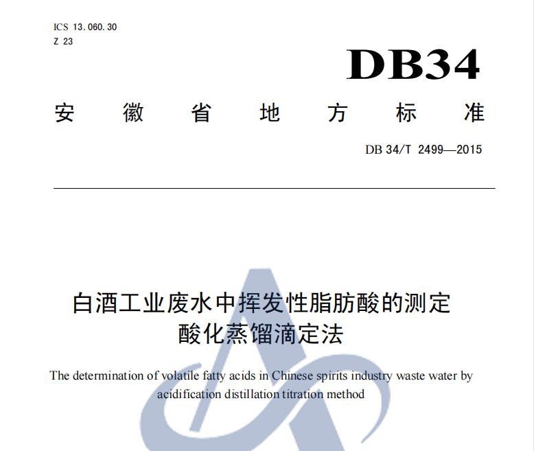 DB 34 T 2499-2015 白酒工業(yè)廢水中揮發(fā)性脂肪酸的測定 酸化蒸餾滴定法 DB 34 T 2499-2015 白酒工業(yè)廢水中揮發(fā)性脂肪酸的測定 酸化蒸餾滴定法 更新日期:2023-01-03 下載包(1)